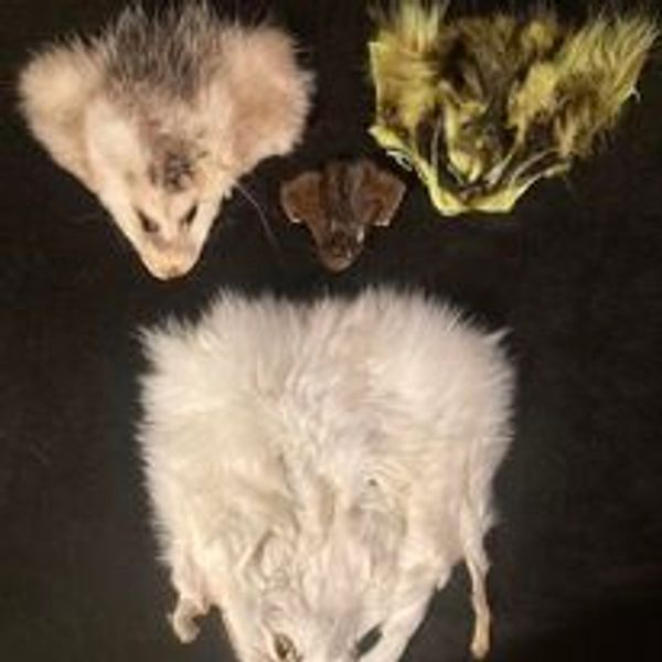 These are the faces of tanned pelts. We have raccoon, fox, and coyotes.